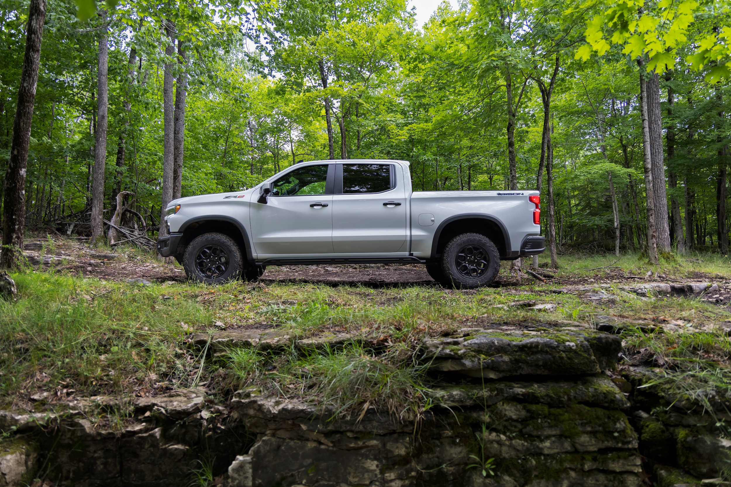 The rugged Trail Boss trims take the Silverado 1500's off-road prowess to the next level with a 2.0-inch factory suspension lift, monotube off-road shocks, and Goodyear Wrangler DuraTrac all-terrain tires. At the top of the range, the opulent High Country boasts 22-inch painted aluminum wheels with chrome inserts, an exclusive two-tone Jet Black and Umber interior color scheme, and open-pore wood trim.